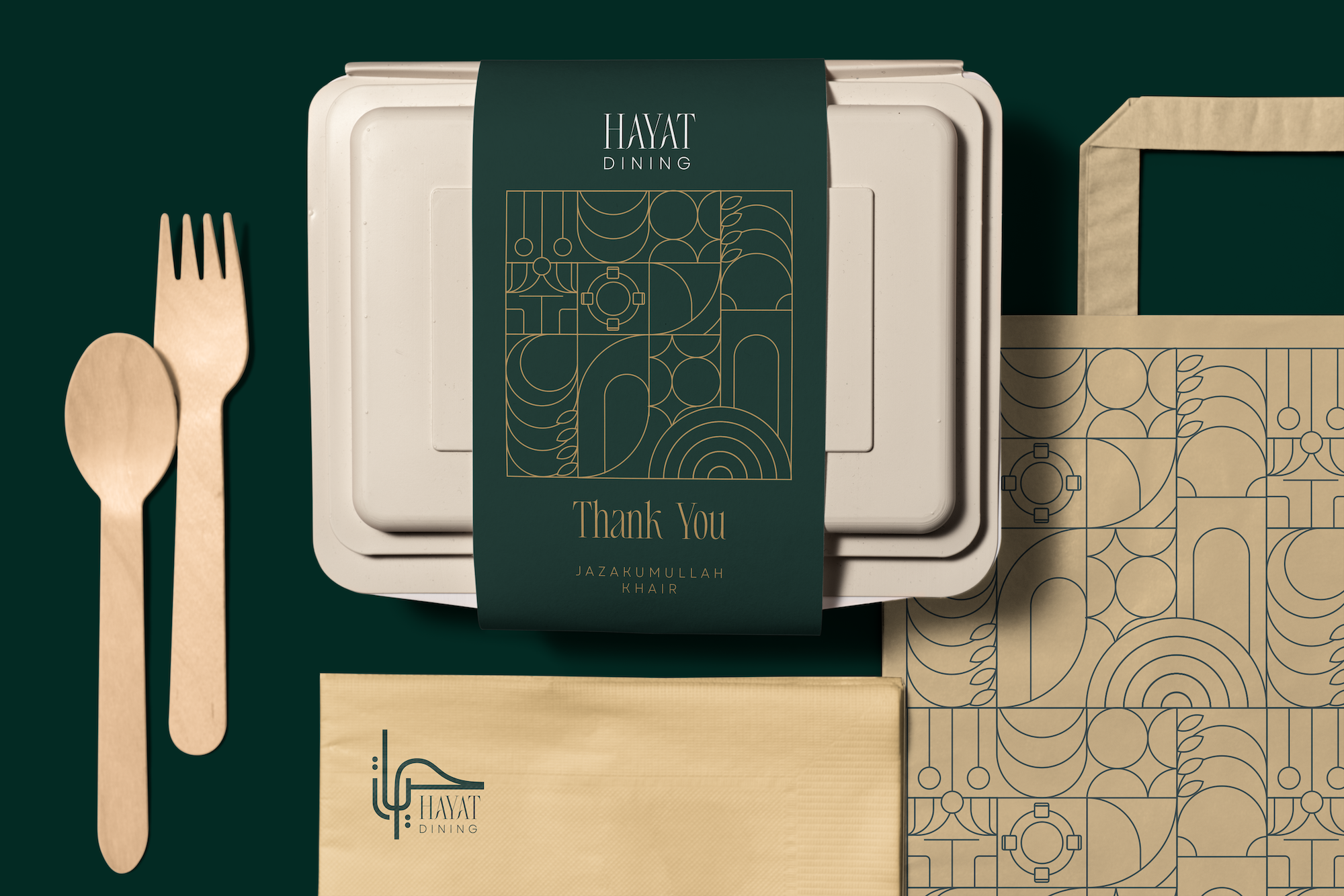 Packaging was developed with subtle Islamic motifs and premium finishes for takeout and gifting. We also designed a suite of social media templates to ensure consistent, elegant storytelling across digital platforms.